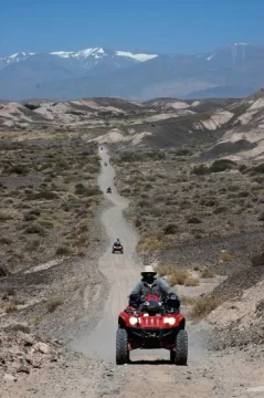 La bandera argentina sobresalía de la parte posterior del cuatriciclo. Sus colores pocos definidos por la tierra eran la muestra más contundente de los kilómetros que ya recorrió. Jorge, oriundo de Buenos Aires, era el conductor del vehículo. Y mientras seguía la huella no deja de asombrarse al ver las nieves eternas de la cordillera. Para él, el cuatriciclo es un medio que le permite llegar a lugares impensado. Y este fin de semana, le tocó el turno a Iglesia. Pero no fue el único que vivió la experiencia. Una treintena de pilotos de cuatriciclos de distintas provincias desembarcó el fin de semana pasado en Rodeo. El compañerismo y el disfrute de la naturaleza, es lo que primó en la movida de la que DIARIO DE CUYO también participó.