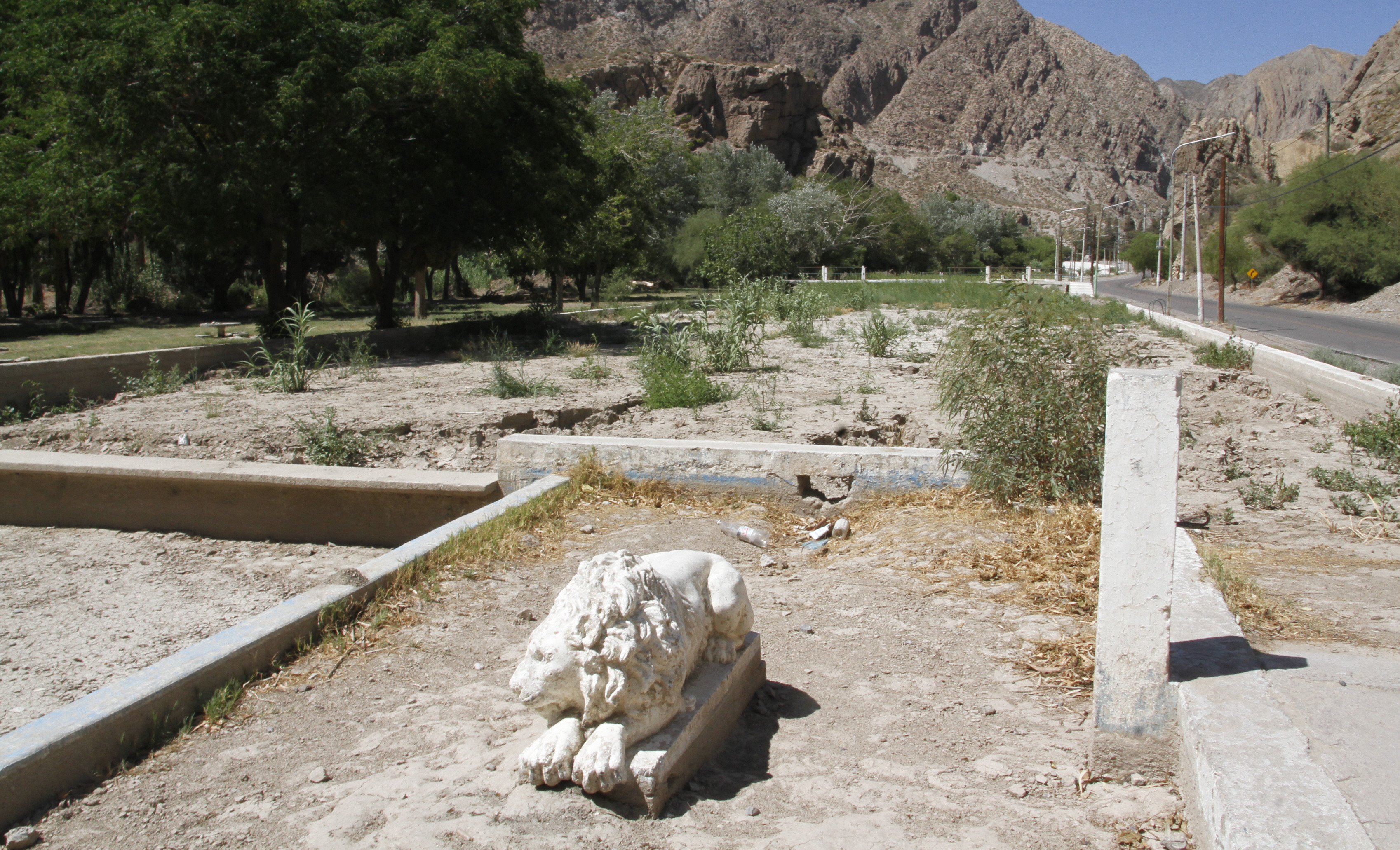En el medio de este ícono sanjuanino aún se conserva un puente, desde el que los más audaces hacían clavados en el agua. Sin embargo, ese puente está rodeado por cañas altas, mientras que la escultura de un león, que fue el lugar donde muchos posaron para las fotos, resalta entre medio del verde de los yuyos y del marrón de la tierra.