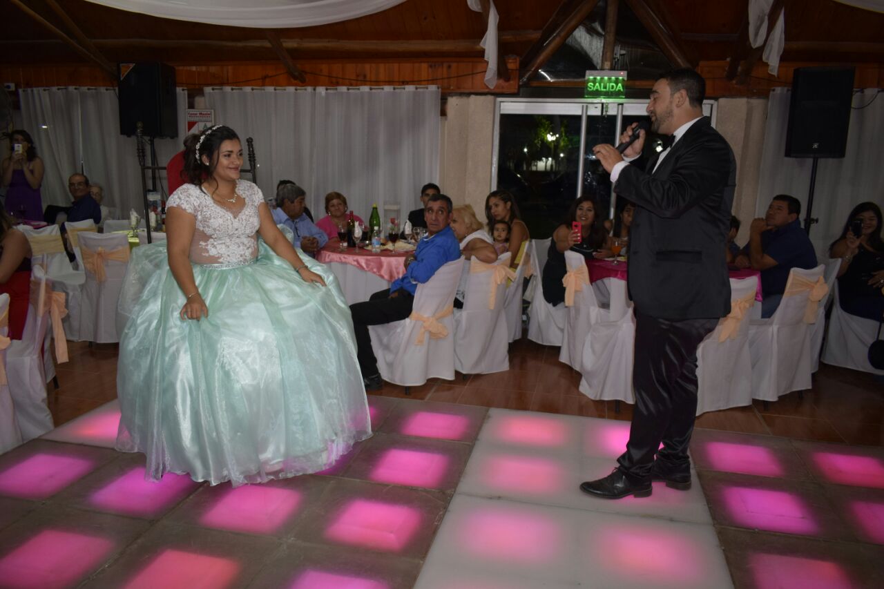 La torta no fue la única sorpresa en el festejo. Su abuelo Ángel Cuello, herrero de profesión, le regaló un trono que le fabricó desde meses. También Agustina fue recibida por una canción que en vivo le cantó su papá. Fue un hermoso vals “La bella y la bestia”, con el que iniciaron la noche bailando.