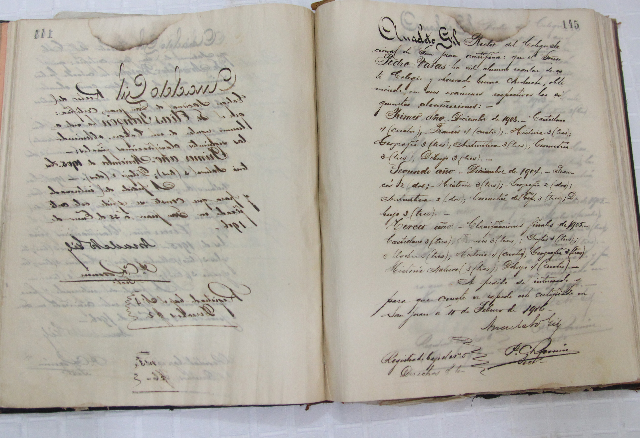 El Colegio Nacional fue fundado por Domingo Faustino Sarmiento en el año 1862. Fue la primera escuela secundaria de la provincia y en la que se formaron algunos de los grandes protagonistas de la historia sanjuanina. Y la muestra que realizará la institución exhibirá documentación que habla de su intimidad escolar. ‘Tenemos un material muy preciado que recrea la historia del colegio como la de las personalidades destacadas de la provincia. Uno de los materiales más importantes es el Libro de la Nacionalización del Colegio, firmada por Bartolomé Mitre en 1865. Ese año el colegio pasó a ser nacional. Pero también hay otros que muestran desde la notas hasta la conducta que tuvieron algunos sanjuaninos destacados’, dijo Claudia Ciani, rectora del Colegio Nacional.