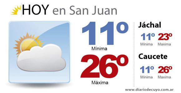San Juan, 28 de abril.- El SMN anunció para este martes una temperatura máxima de 26 grados con cielo algo nublado y viento del sector Este.