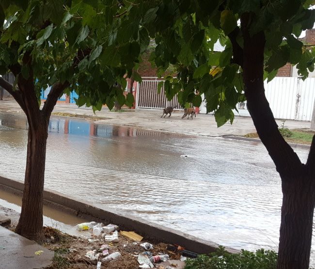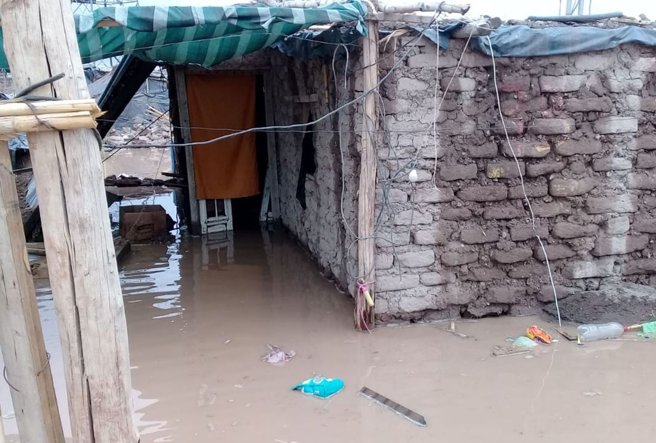 El agua no sólo entró a las casas de adobe y techo de nailon convirtiendo el suelo de tierra en un río, sino que además la lluvia y algo de granizo terminaron de perforar las cañas, voltear algunas paredes y convertir esas viviendas en remolinos peligrosos de barro, agua helada y colchones flotando y chocando contra los muebles inundados.