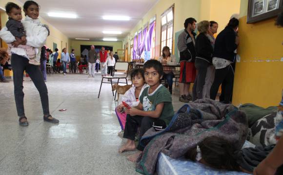 Los primeros evacuados fueron de Pocito, del asentamiento ubicado en Calle 17 y Aberastain y fueron trasladados por el municipio a partir de las 20 del jueves y así lo hicieron luego de que el canal que atraviesa la zona comenzara a desbordarse. Cuando la gente, que vive a menos de 2 metros del canal, comenzó a ver que el nivel del agua era cada vez mayor, comenzaron a correr para buscar un lugar donde protegerse de los inevitables daños. Así fue que esas 266 personas fueron refugiadas en la escuela Batalla de Tucumán, mientras que sus viviendas de adobe no soportaron la correntada.