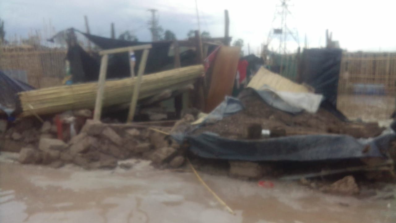 Una situación similar se vive en la Villa La Paz, de La Bebida, en Rivadavia. Allí, las precarias viviendas sufrieron graves daños. Varias de las construcciones terminaron con sus techos en el suelo y, según los vecinos, el agua que se acumuló les llega a las rodillas a los vecinos.