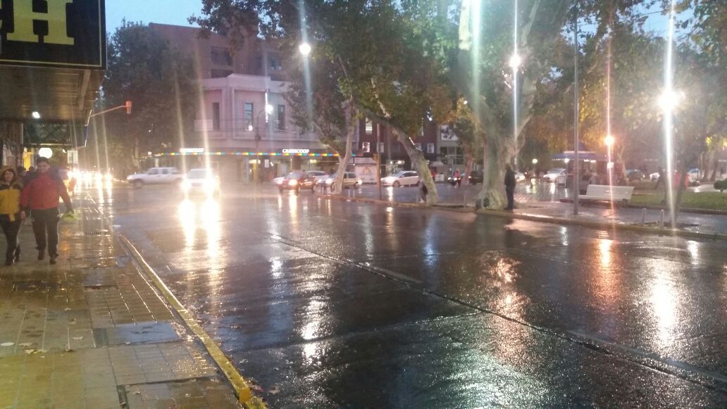 Las calles del microcentro quedaron completamente mojadas y hasta hubo algunos accidentes a raíz de ello. El frente frío se quedará en la provincia por unos días más.