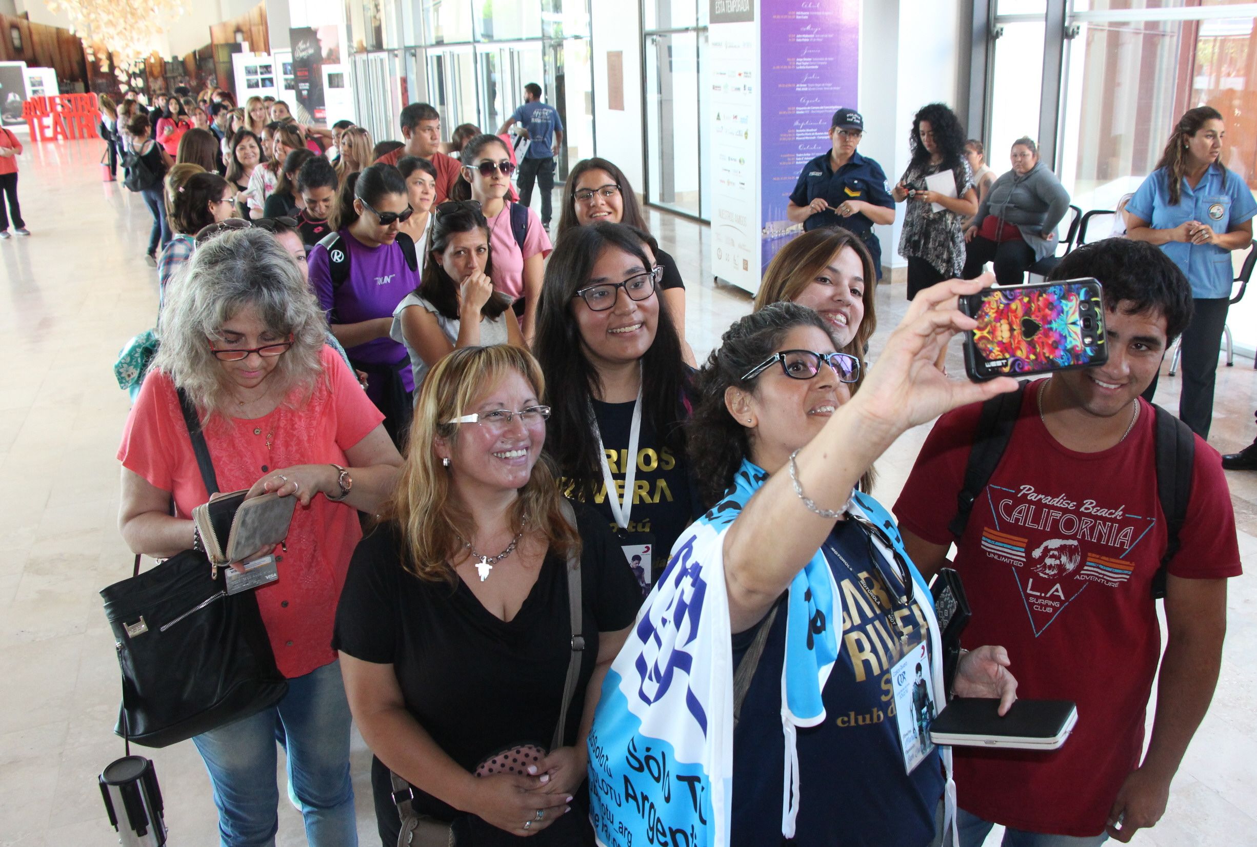 La puerta del Teatro del Bicentenario lució diferente desde el domingo en la mañana. Reposeras, bolsos materos y hasta algunas frazadas fueron parte de la postal que se repitió hasta ayer a las 10 cuando comenzó la venta de entradas para los espectáculos de la Fiesta Nacional del Sol. Hubo grupos de jóvenes que acamparon por más de 24 horas con el fin de ser las primeras en tener su entrada en la mano y así lograr la mejor ubicación en los recitales, especialmente en el show de Carlos Rivera. "No importó el frío de la noche", "trajimos varios termos con café" y "todo vale la pena para ver a Carlos Rivera", fueron algunas de las frases que dijeron las fanáticas del mexicano, que fueron quienes coparon el ingreso al teatro. La venta de entradas continúa hoy.