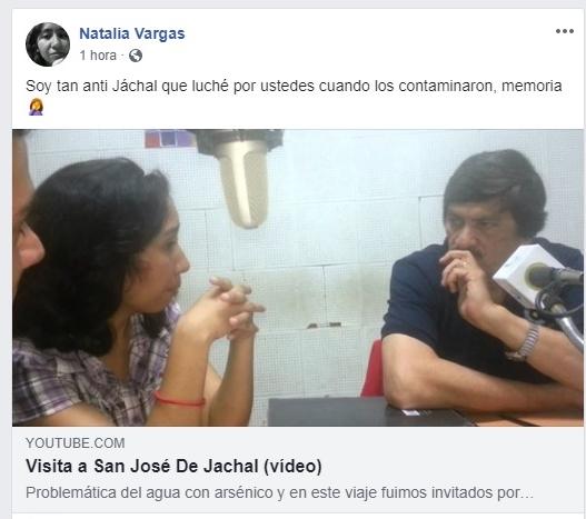“Soy tan anti Jáchal que luché por ustedes cuando los contaminaron, memoria”, escribió de modo irónico en su cuenta de Facebook junto a un video publicado en YouTube el 12 de octubre de 2014.