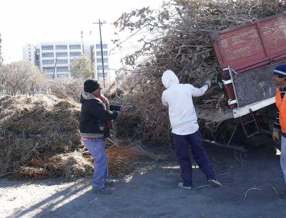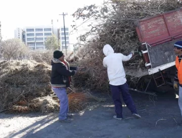 Alrededor de él, los trabajadores colocaban ramas secas, que trasladan desde el Obrador municipal, donde durante todo el año depositan los residuos de la poda. Además de basura, como pasto, yuyos, botellas, hojas y cajas. "Lo más importante es hacer capas. Primero se pone ramas; arriba de ellas, basura; después ramas de nuevo; y así sucesivamente. Eso ayuda a que la montaña prenda bien y no se caiga", dijo el hombre. Y agregó que además hay que rodear todo el armazón con alambre, desde abajo hacia arriba. "Hay que dar muchas vueltas, usamos unos 100 metros de alambre", explicó. Así, el bodoque de ramas y basuras que se arma es tan grande (mide unos 9 metros de alto por unos 8 de diámetro), que los hombres necesitan una máquina hidroelevadora para poder llegar a la parte superior.