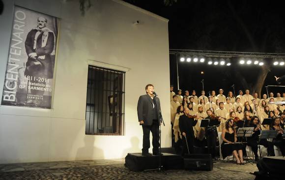Así se vivió el final de los dos himnos, el Nacional y Provincial a Sarmiento, anoche, frente a la Casa Natal del Maestro de América. Y ese momento llegó a cada punto del país, en cadena nacional, para conmemorar el aniversario de la muerte de Domingo Faustino Sarmiento, en el año del bicentenario de su natalicio.