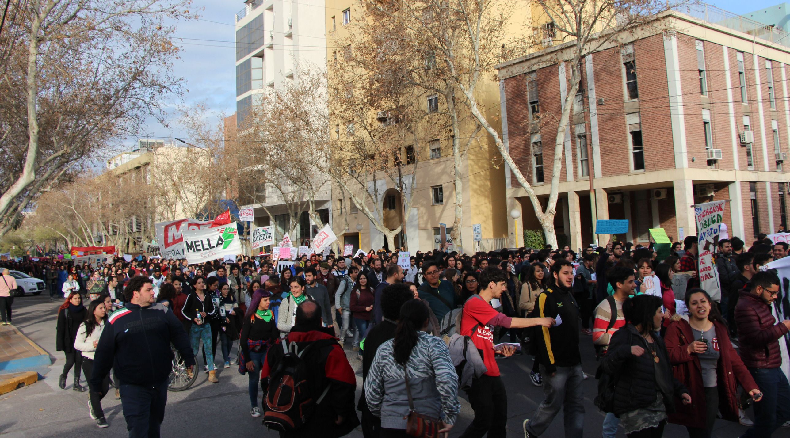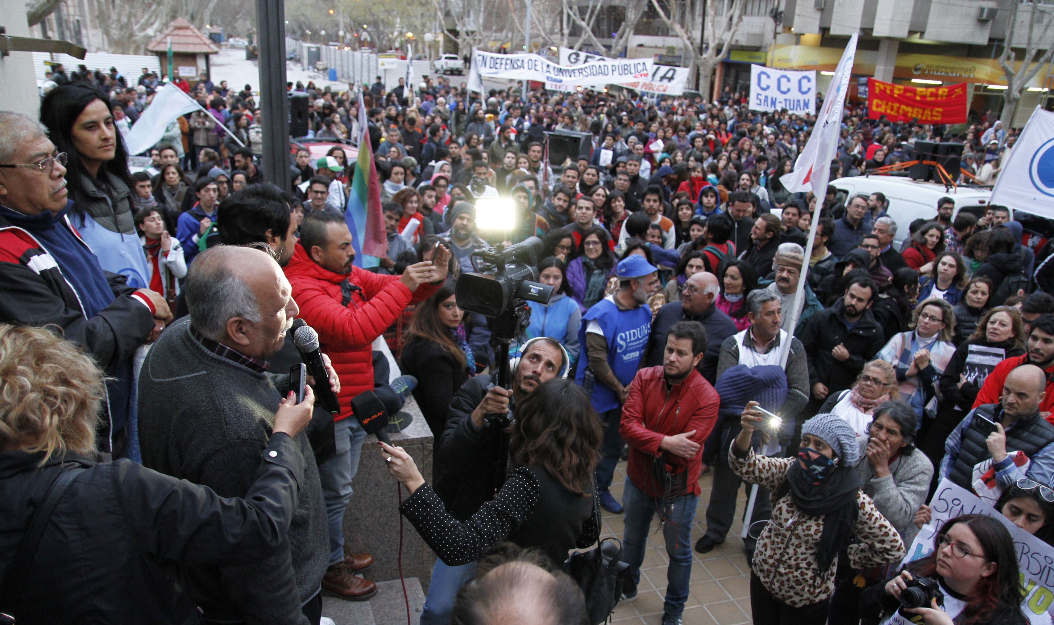 En San Juan también se hizo sentir la protesta generalizada que hubo en el país contra el Gobierno nacional, reclamando aumento salarial y mayor presupuesto educativo a las universidades públicas, y resultó ser la marcha más numerosa en lo que va del año, con 10.000 personas, según estimaciones de la organización.