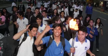 Entre los que hicieron la marcha y los representantes de esos cinco departamentos hubo más 220 alumnos, unidos por el fuego de la llama. La primera de las escuelas que portó la antorcha fue la Superior Sarmiento y todos los demás chicos se encolumnaron detrás. Y ahí nomás iniciaron el trote, pasándose la antorcha casi sin detenerse. En el recorrido por el microcentro hubo cantos, risas y respiraciones agitadas, hasta que regresaron a la Casa de Sarmiento. Entonces, con el fuego de la antorcha, el intendente Lima encendió cirios, que tomaron los intendentes de los cinco departamentos invitados. Y ellos a su vez los entregaron a los alumnos de sus escuelas, para el traslado simbólico. Hoy la Fiesta de la Educación continuará con una gala gimnástica, a las 10 y en plaza Aberastain.