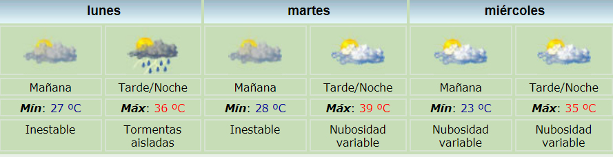 Tal como viene sucediendo en los últimos días se espera que por la noche se registren algunas lluvias aisladas, aunque durante el día la temperatura máxima alcanzará los 34 grados.