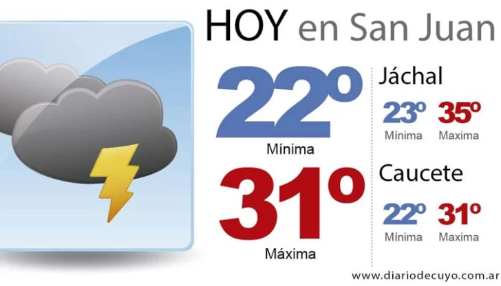 San Juan.- El Servicio Meteorológico Nacional anunció para este miércoles una temperatura máxima de 31 grados con viento Norte por la mañana y del Sur por la tarde. Además, se anuncian precipitaciones aisladas por la noche.