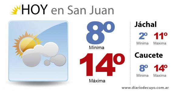 San Juan, 24 de junio.- El Servicio Meteorológico Nacional anunció para hoy una jornada fresca, aunque con viento del sector Norte en las primeras horas del día. El termómetro llegará a los 14 grados con viento del Este en la tarde-noche.