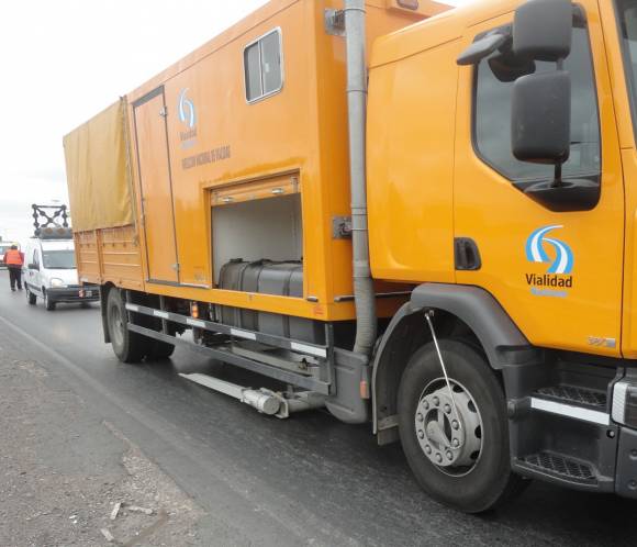 El nuevo camión cuenta con sensores ubicados en un trineo en la parte inferior, que van arrastrándose por el pavimento y detectando las denominadas deflexiones, además de contar con termómetros incorporados. Todo está conectado a un software y los resultados se van transmitiendo en tiempo real a una notebook que maneja un especialista dentro del vehículo.
