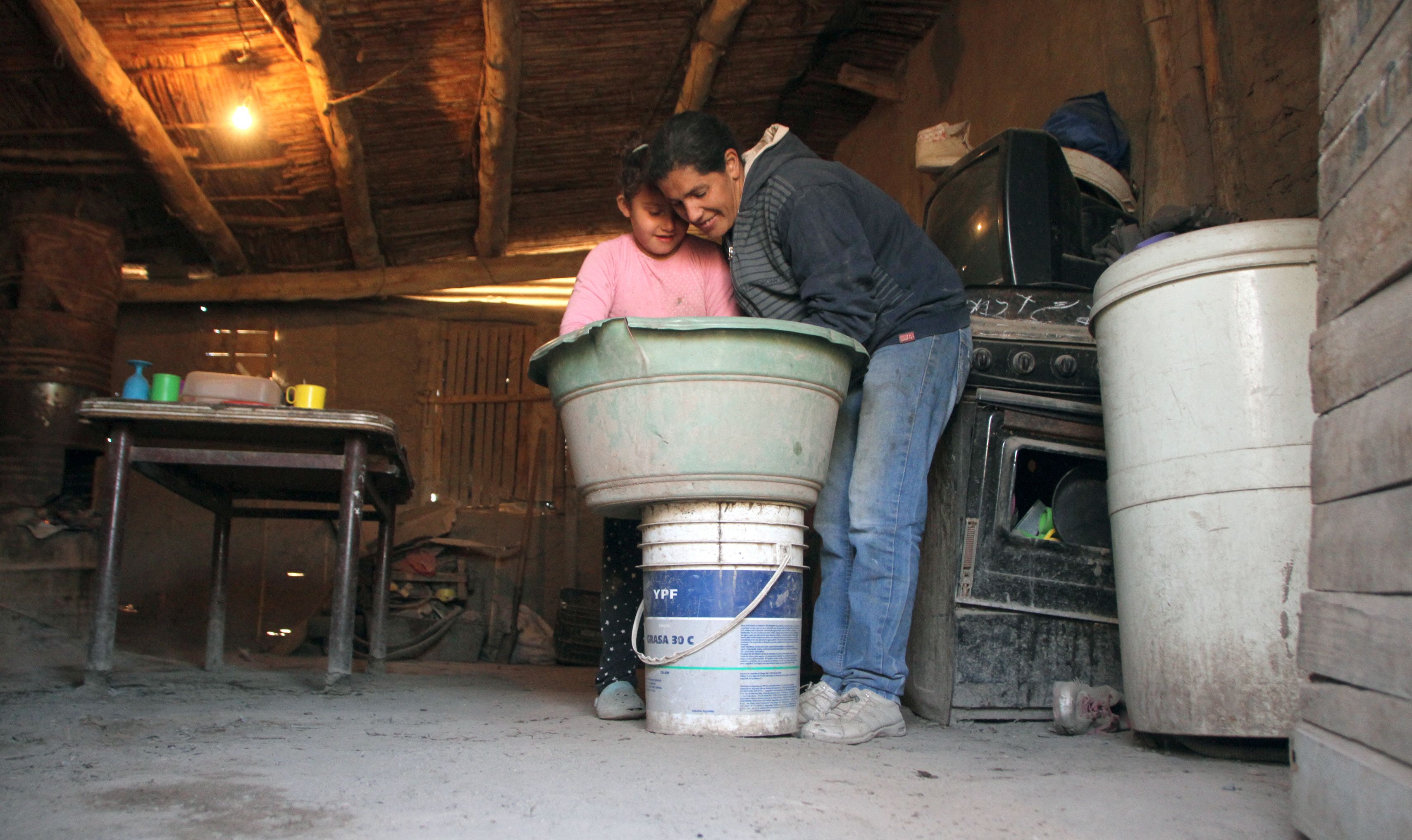 mental y motora y eso hace que se movilice en silla de ruedas. "Cuando tenemos que bañar a Jesús -su hermano- gastamos muchísima agua porque tardamos mucho. Es muy difícil vivir sin agua en las cañerías", agregó la mujer.