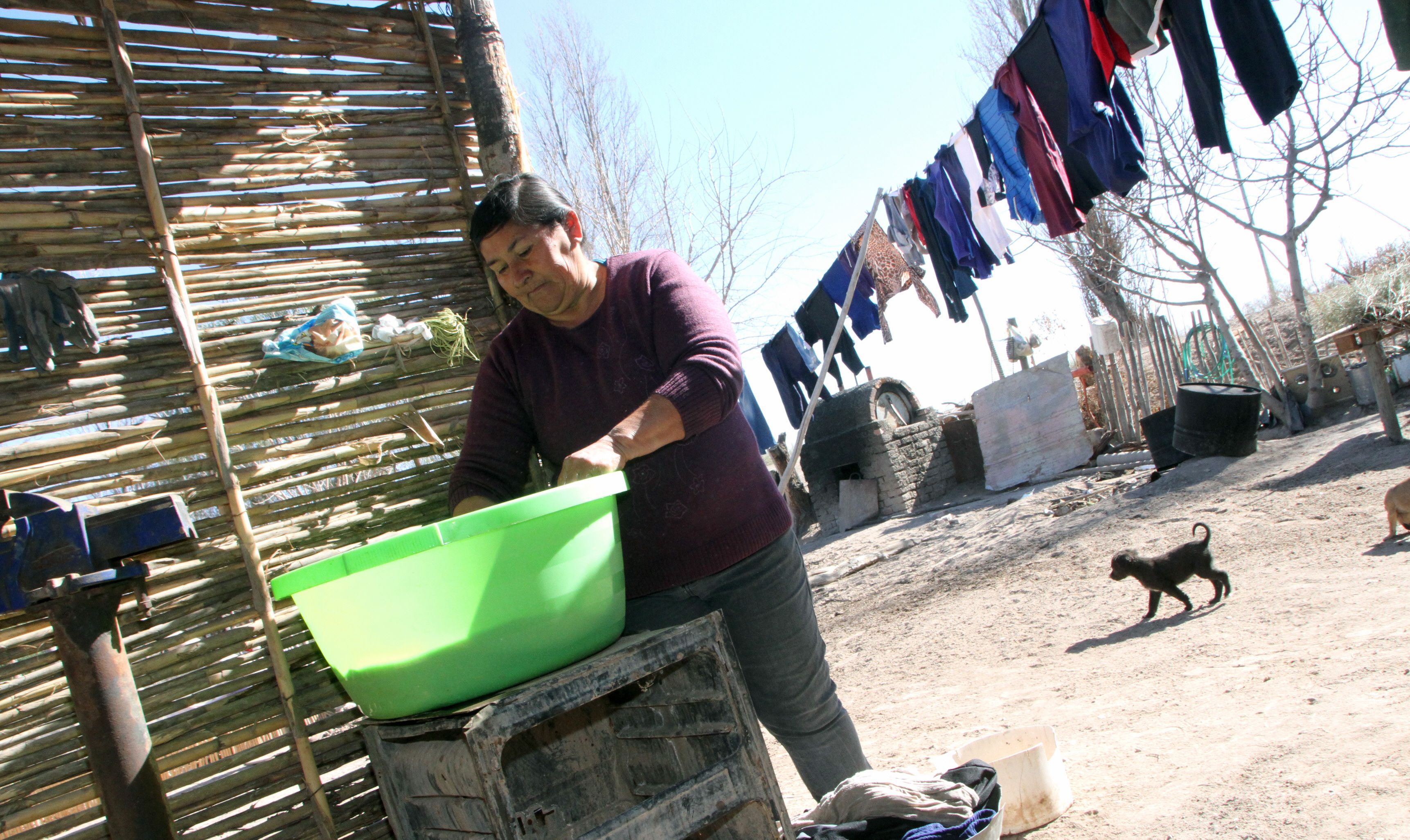 Ester Reinoso aprovecha los días que llevan agua para lavar la mayor cantidad de ropa posible, para tener para toda la semana. "Calentamos agua con leña y lavamos sin parar. Para tirar toda la semana con esa ropa", dijo la mujer que se las ingenia dos o tres días con el agua que le queda para cocinar, bañarse y poder beber.