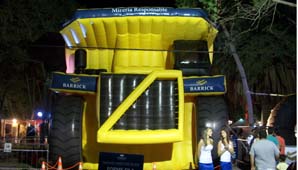 San Juan, 21 de febrero.- En la Feria Temática que se desarrolla en el Parque de Mayo existe la oportunidad, propuesta por Barrick, de manejar los famosos Camiones Fuera de Ruta, que pueden transportar hasta 250 toneladas en una sola carga.