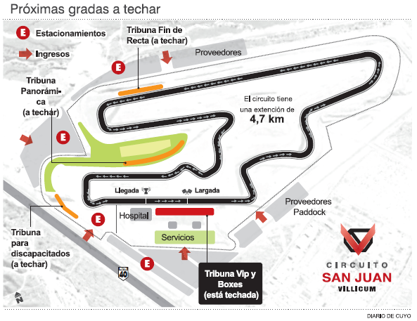 Así lo confirmó Jorge Deiana, secretario de Obras Públicas de la provincia, quien calificó a este desarrollo como "parte de la evolución que impone el impacto social de una obra como ésta". "Estamos pensando techar las tribunas porque el sol de San Juan es duro, esto es evolutivo de acuerdo a las necesidades, de las condiciones económicas y del reintegro a la provincia porque con esto se van desarrollando otras áreas como turismo y servicios", dijo el funcionario. Es por eso que el otro desafío en carpeta es la instalación de una confitería y de un hotel cinco estrellas dentro del predio. De hecho en el reciente TC el autódromo explotó con un total de 62 mil asistentes, lo que se tradujo en una capacidad hotelera local colmada y en el abastecimiento de alternativas como la habilitación de campings y zona para motorhomes en la zona de Albardón.