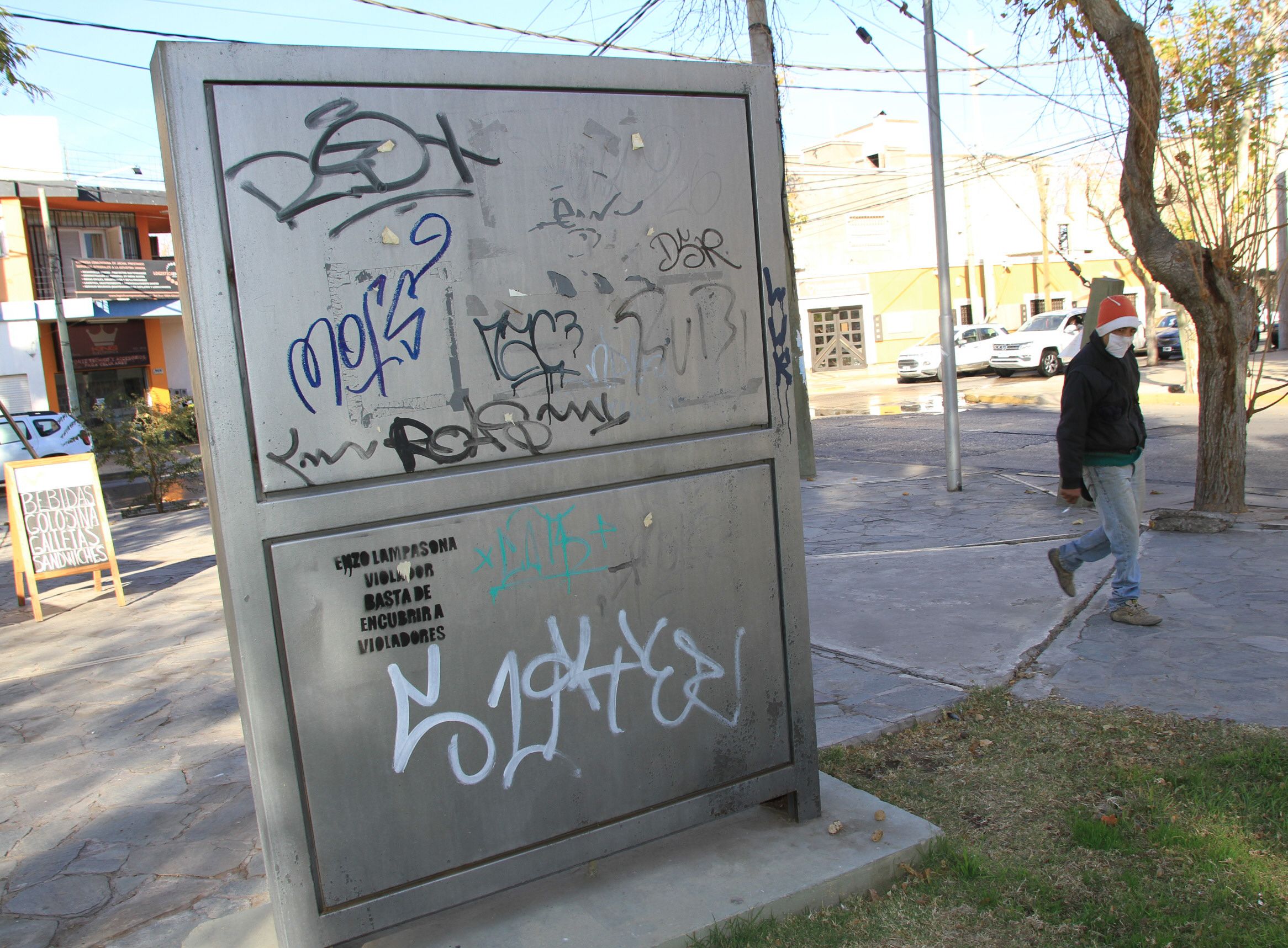 Los bancos, paredes, escaleras y hasta algunos bustos que hay en la plaza están llenos de grafitis. Hay de todos los tamaños, colores y tipografías. En otros rincones de este espacio verde, que según Rodríguez está siendo recuperado porque se había deteriorado el césped, se puede ver luminarias dañadas y el sistema de riego roto. Como si eso fuera poco, la cartelería de la plaza también es el blanco de muchos daños. Incluso los carteles de señalización vial. "Tenemos placeros en las mañanas, las tardes y los fines de semana, pero hay mucha gente que hace daño en la plaza. Sufrimos mucho el vandalismo en este lugar y estamos constantemente reparando aspersores, carteles y luminarias", dijo Rodríguez y comentó que lo mismo les pasa con la basura, pues ellos limpian diariamente, pero la plaza siempre parece estar sucia. Según sus propias palabras, todo esto convierte a la Yrigoyen en la plaza más vandalizada de la Ciudad.