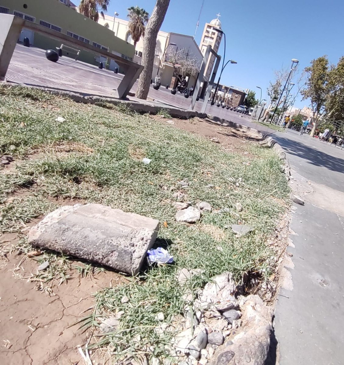Y ni siquiera los diferentes espacios verdes dentro del predio del paseo permanecieron ajenas al salvajismo y falta de mantenimiento. Casi todos tienen roto parte del cordón de hormigón que los rodea.