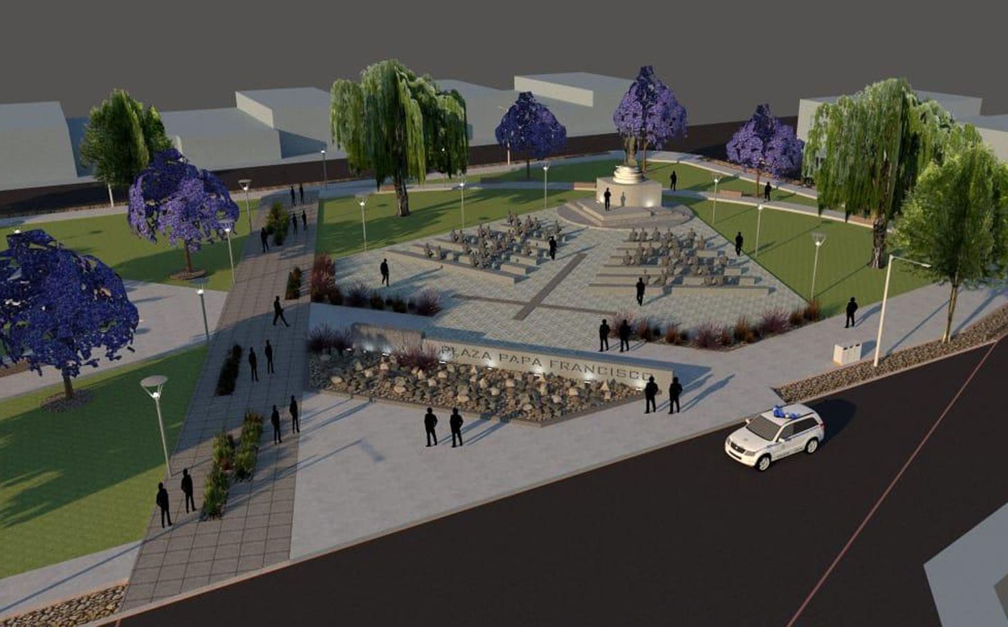 Frente a la misma, se construirán dos hileras de bancos para que la gente pueda participar cómodamente de la celebración de las misas que se realizará en esta plaza. ’Contamos con la autorización del Arzobispado tanto para la colocación de la imagen del Papa en la plaza y poder usarla para realizar actividades con fines religiosos. Es que, en un futuro, tenemos planificado construir frente a este paseo un nuevo templo’, dijo Gramajo.