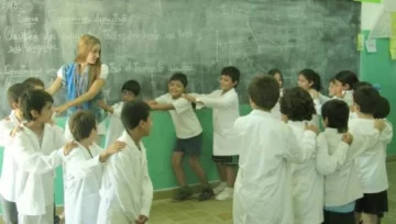 Pero la mejor experiencia tanto para los chicos como para ella llegó casi al final del horario de clases. Visitó a los chicos de segundo grado, justo en la hora de música. Junto a los chicos armó un trencito para bailar y jugar. Antes de irse se despidió de los chicos y de los docentes de esta escuela, prometiéndoles volver si la agenda real se lo permite.