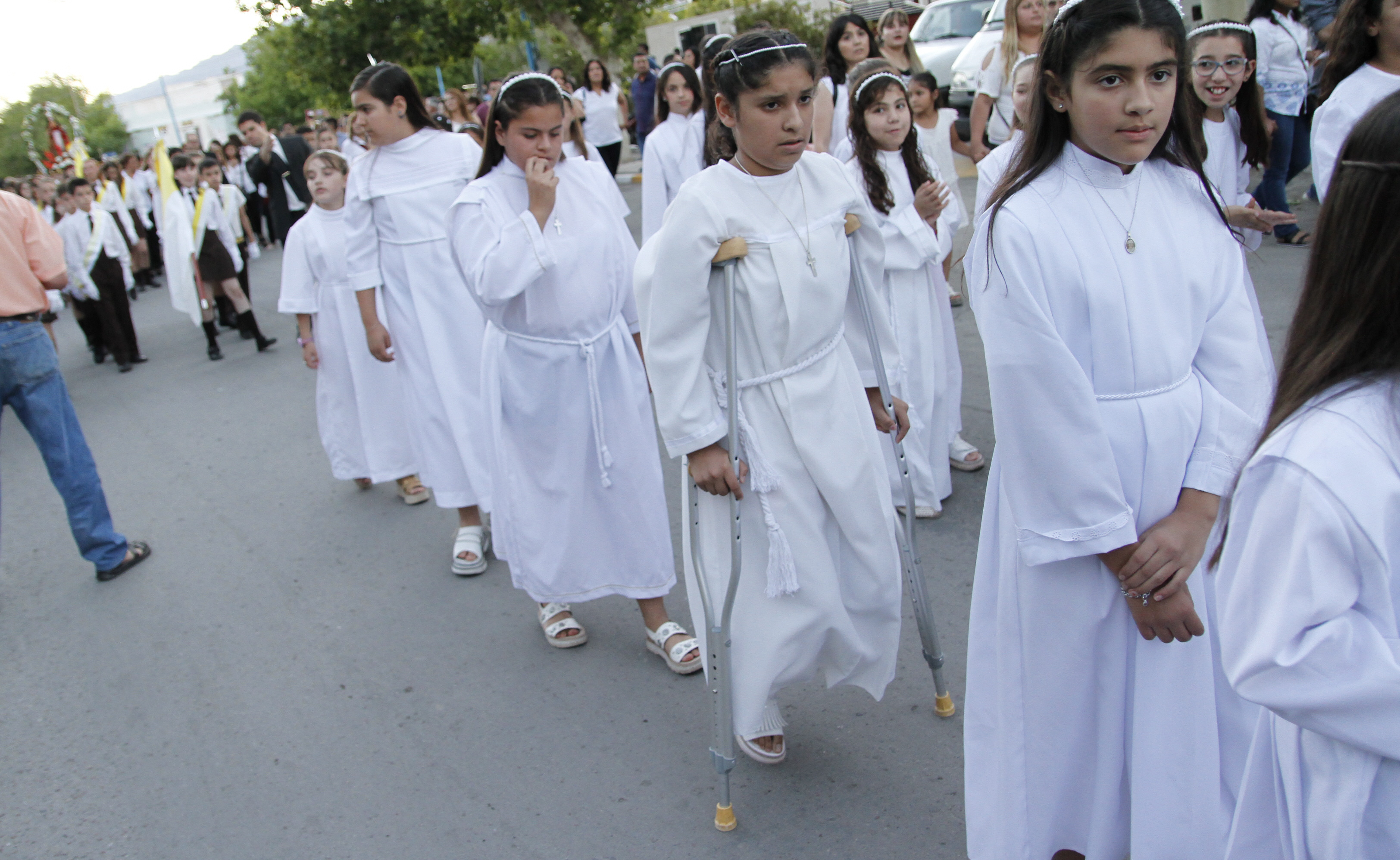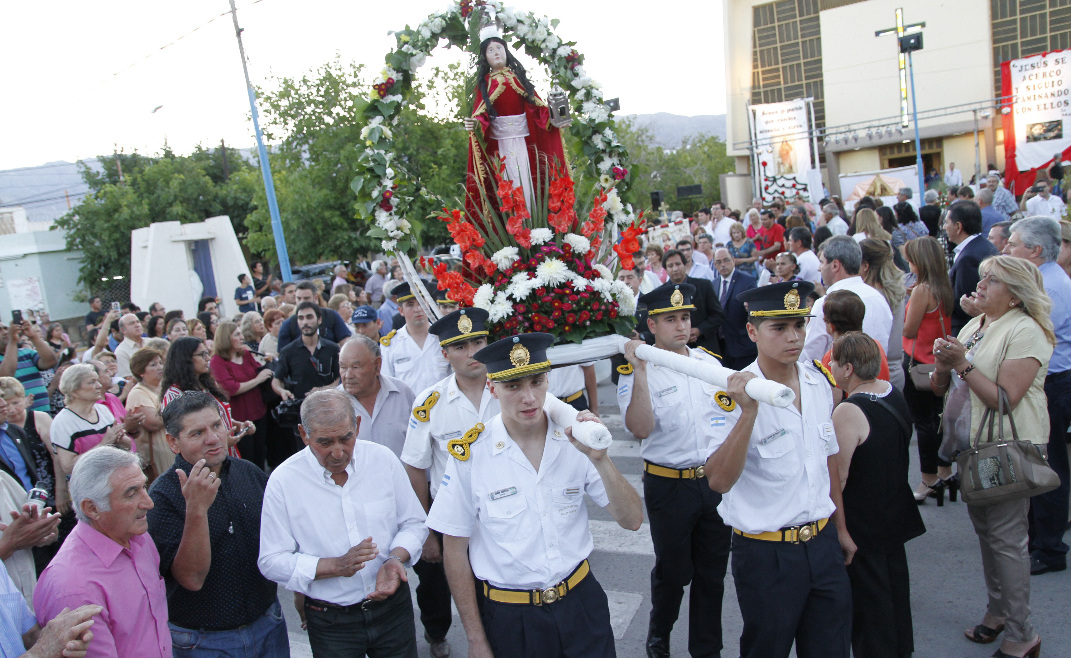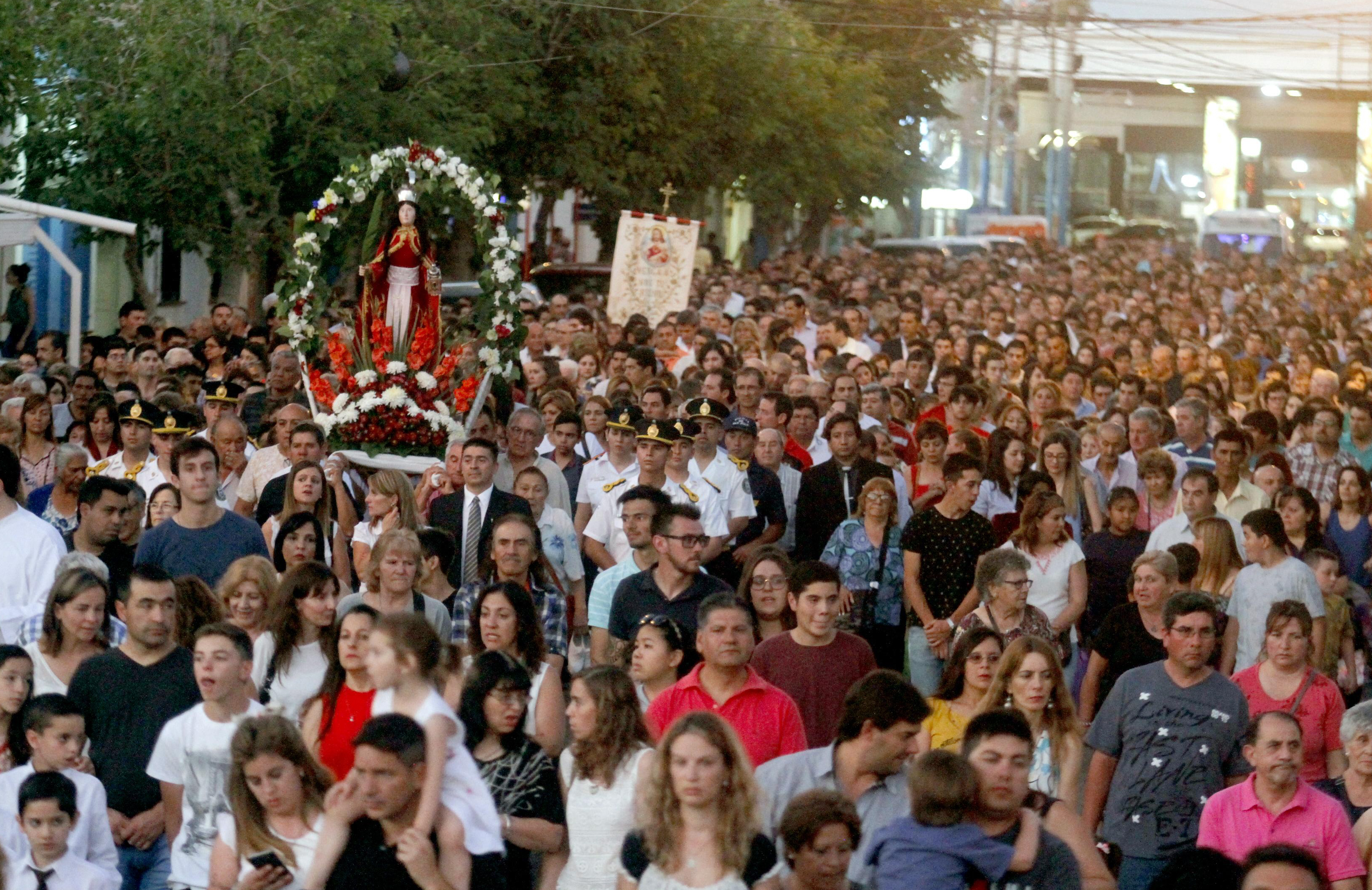 La cita era a las 19,30, pero a esa hora ni siquiera habían llegado los niños que hicieron la Primera Comunión. Recién 15 minutos más tarde comenzaron a llegar todos apurados para no perderse la oportunidad de demostrar su fe. Fue ayer, en Pocito, donde se realizaron las Fiestas Patronales de Santa Bárbara. La procesión en su honor arrancó media hora más tarde de lo pautado, por causa de la superfinal Boca-River. Pero, aunque con demora, los fieles coparon las calles. Unas 4.000 personas participaron de la peregrinación en la que pidieron a Dios que proteja a los niños.