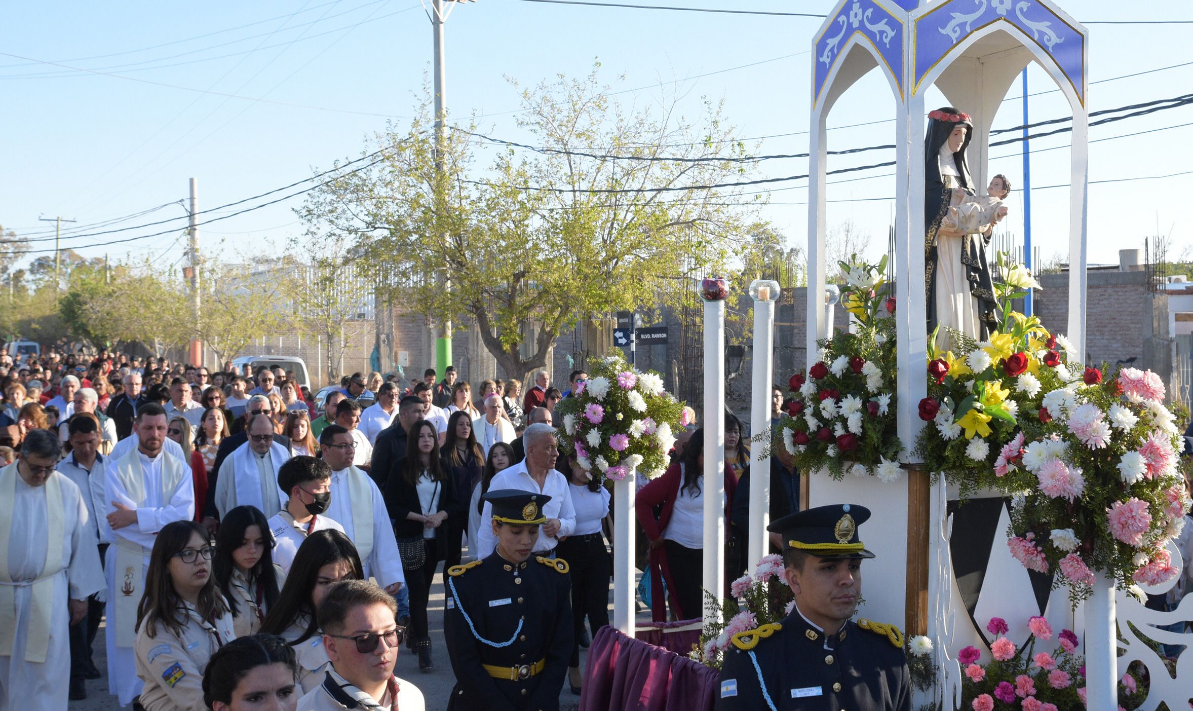 Pese a que Santa Rosa marchó detrás de los fieles, el contingente estuvo encabezado por las imágenes de vírgenes y santos que llegaron desde otras comunas y localidades para participar de la fiesta con la intención de poner en valor el sentido de hermandad.