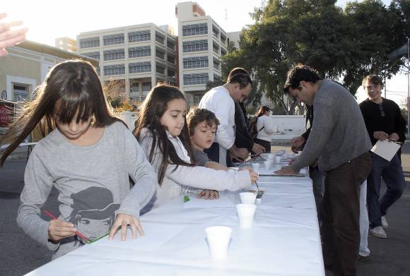 En una mesa ubicada al lado de la suya estaba Magalí, de 3 años, cuyos dedos parecían un arco iris. La niña, que había ido acompañada por su abuela y sus hermanas, se paraba en puntas de pie para llegar a la mesa, pero no se privó de hacer un dibujo.