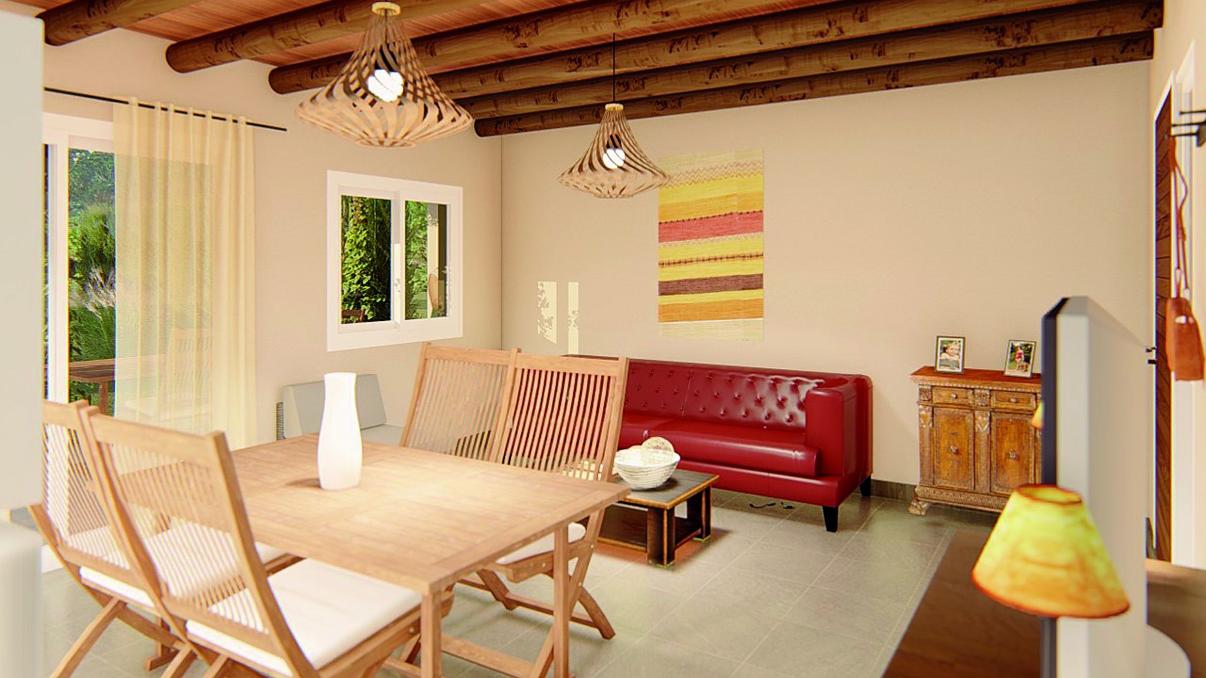 Como se aprecia en las proyecciones en imágenes realizadas por el IPV, el nuevo prototipo de vivienda para construir en las zonas alejadas de la provincia muestran más espacio para empalizadas y galerías, de modo de lograr un mejor aprovechamiento del exterior. También desde el diseño hay un concepto de integración con el interior, en cuanto a la estructura de los techos, propuesta con los mismos troncos usados afuera.