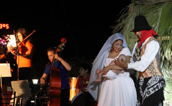 De ahí en más se fue incorporando el resto de los artistas para representar las diferentes escenas, siempre acompañados con la música folclórica del Coro Municipal y los villancicos interpretados por la orquesta.