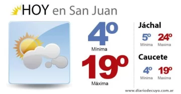 San Juan, 3 de agosto.- El Servicio Meteorológico Nacional anunció para este lunes una jornada en la que la máxima llegará a los 19 grados con viento del Sur por la mañana y del Sudeste por la tarde.