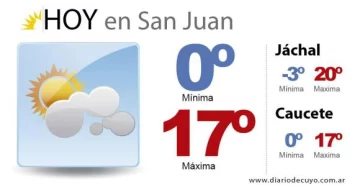 San Juan, 10 de julio.- El Servicio Meteorológico Nacional anunció para este viernes una jornada templada que con el correr de las horas llegará a los 17 grados,gracias al viento del Norte. Sin embargo, el fin de semana llegará acompañado por inestabilidad.