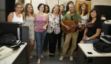 El Sindicato de Prensa homenajeó a las periodistas de la redacción de Diario de Cuyo con una serenata. Fue Raúl Astorga, que con su guitarra y algunos boleros, le puso música a la jornada. El músico estuvo acompañado por Liliana Oviedo.