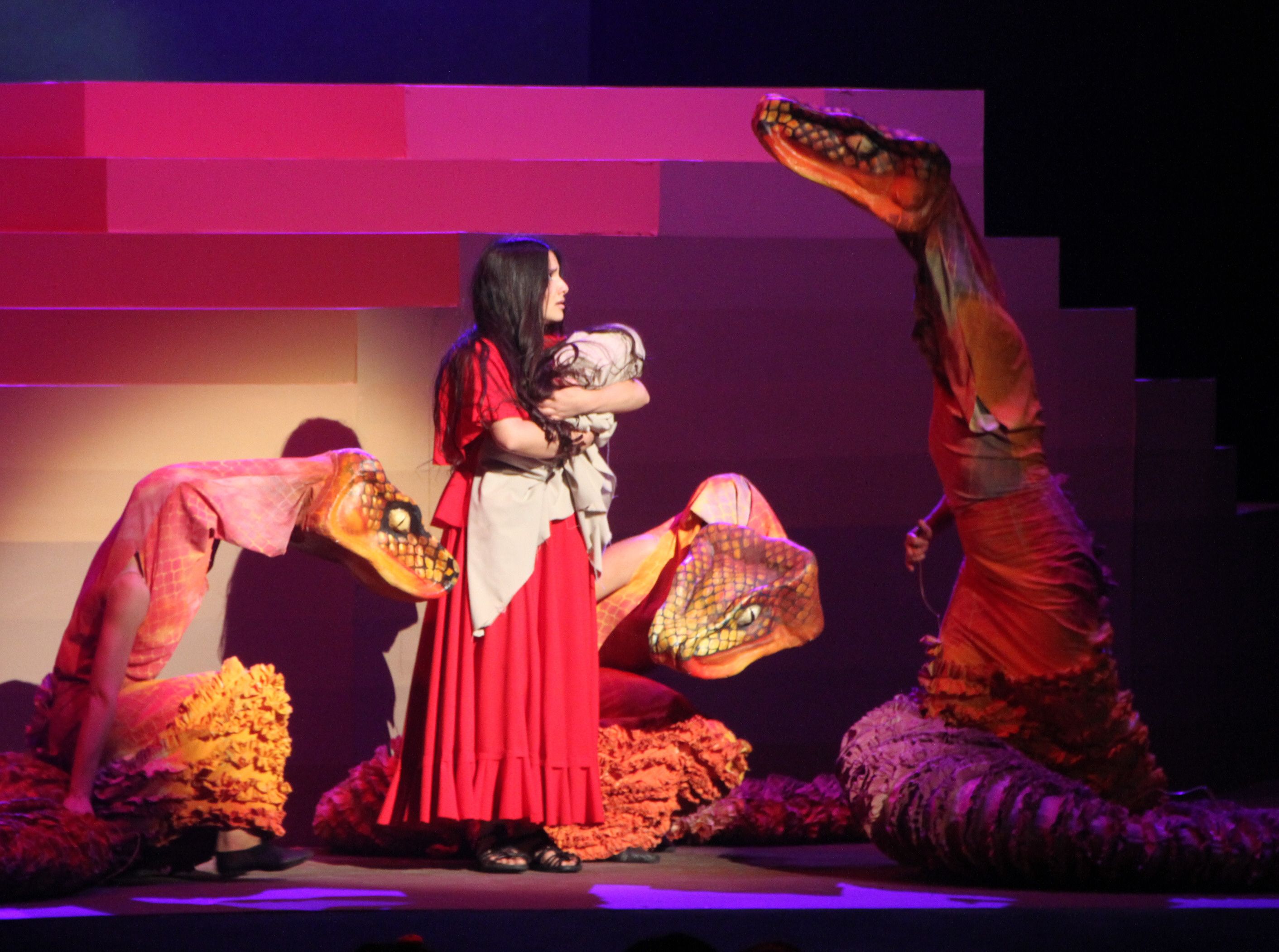 Con menos artistas, pero con un impacto mayor ya que la utilería, que se estrenó en febrero pasado en el Autódromo, tomó otra dimensión dentro de la sala principal del teatro. Todo fue tan grande y cercano que causó mucha sensación entre los niños. Mientras que las maestras salieron emocionadas por la historia de amor, con final trágico, los alumnos vivieron la obra, al principio como una película amena, luego como una seguidilla de escenas de terror, sobre todo cuando Deolinda se pierde en el desierto y comienza su agonía.