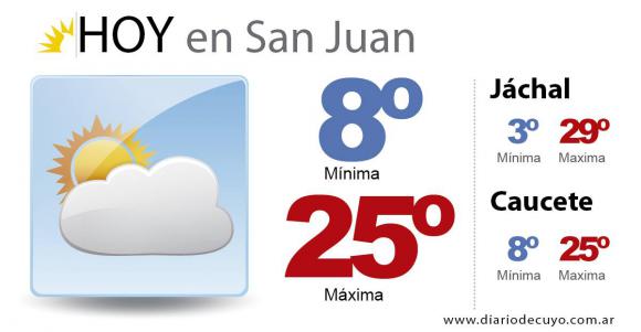 San Juan,3 de junio.- El Servicio Meteorológico Nacional anunció para hoy una temperatura máxima de 25 grados con probabilidad de viento Zonda.