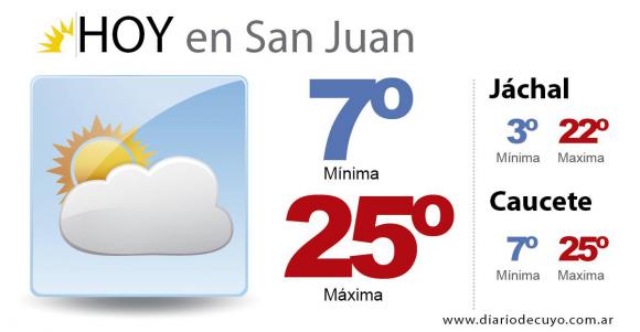 San Juan, 14 de mayo.- El Servicio Meteorológico Nacional anunció para hoy una temperatura máxima de 25 grados con vientos de direcciones variables y nubosidad variable.