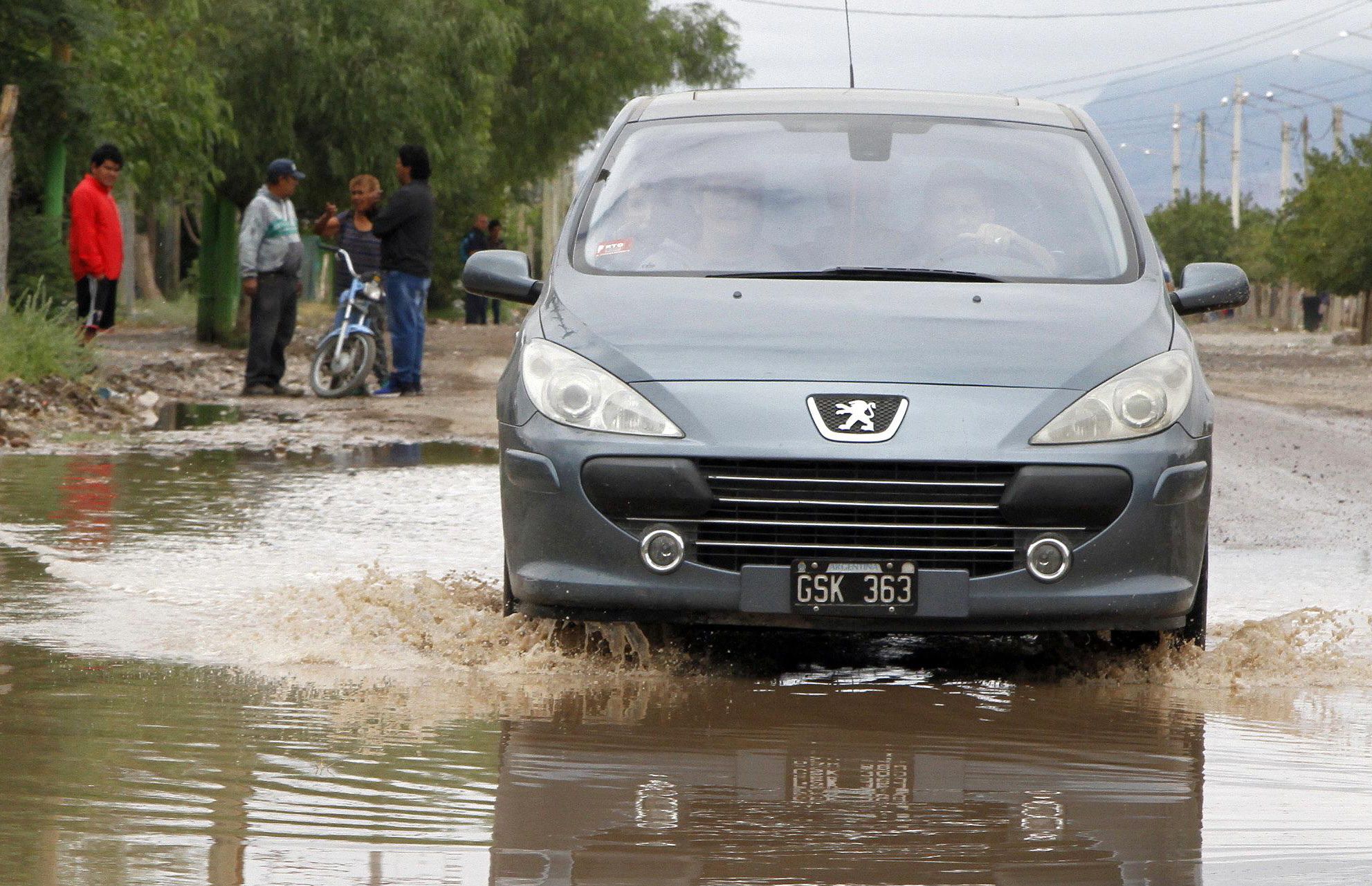 Anegadas. Las calles del Gran San Juan que no cuentan con obras de urbanización se vieron inundadas, generando los inconvenientes de tráfico.