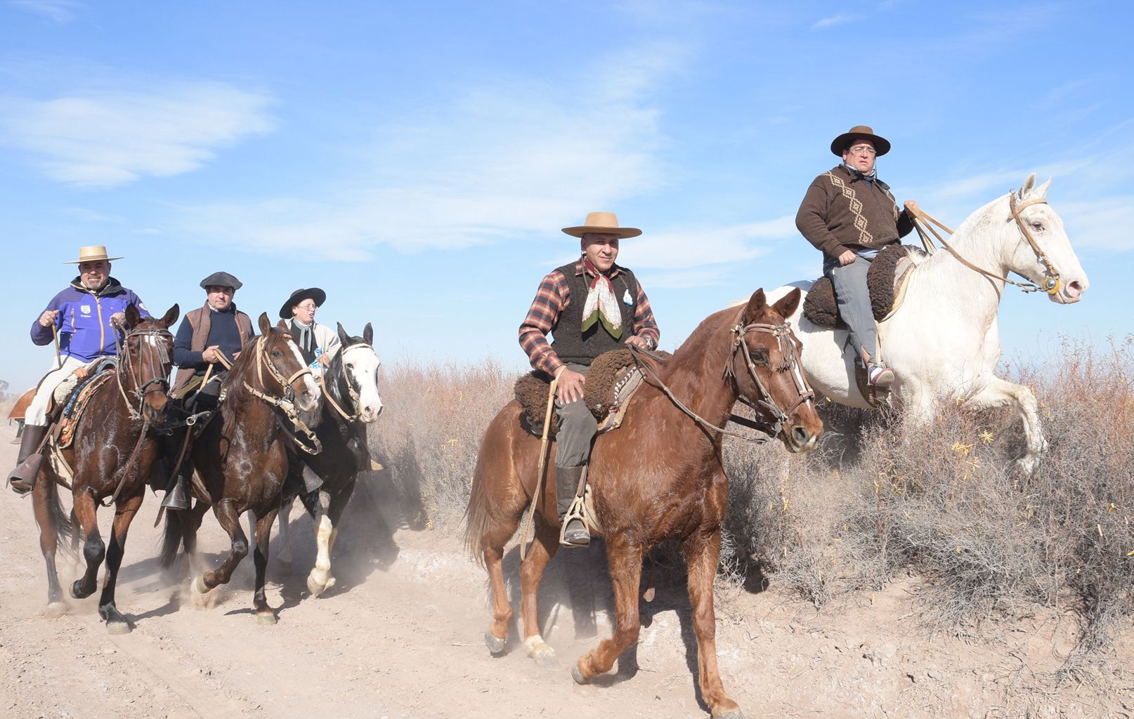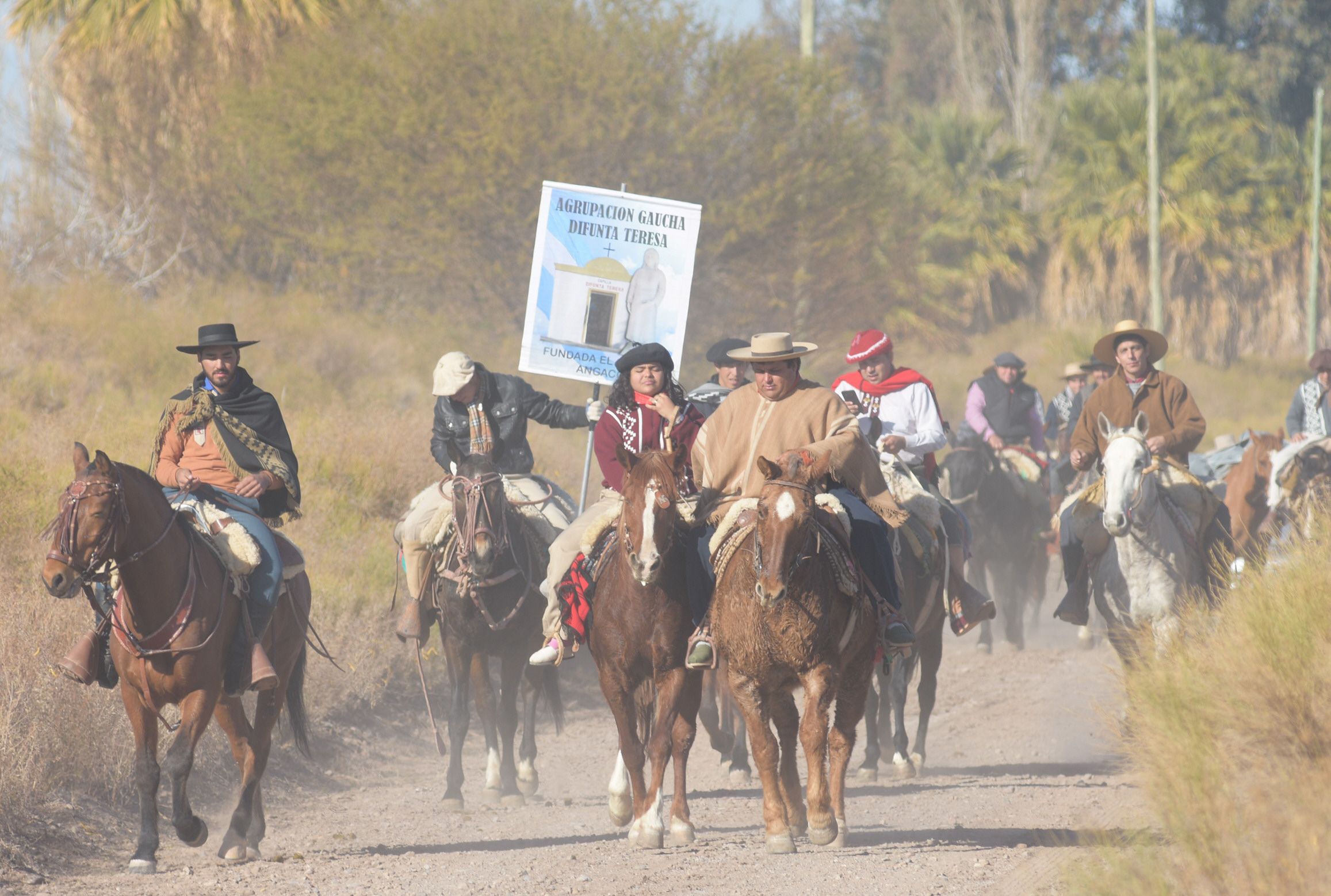 Lo mismo les deseó Pedro Gordillo, presidente de la Agrupación Gaucha Difunta Teresa, organizadora de la cabalgata. Pidió a Dios que los protegiera y les deseó buen viaje. Y hasta el intendente de Angaco, Carlos Maza Peze, los encomendó a la Difunta Teresa y les pidió que se cuidaran "los unos a los otros", en el "largo y difícil camino" que tenían que recorrer.