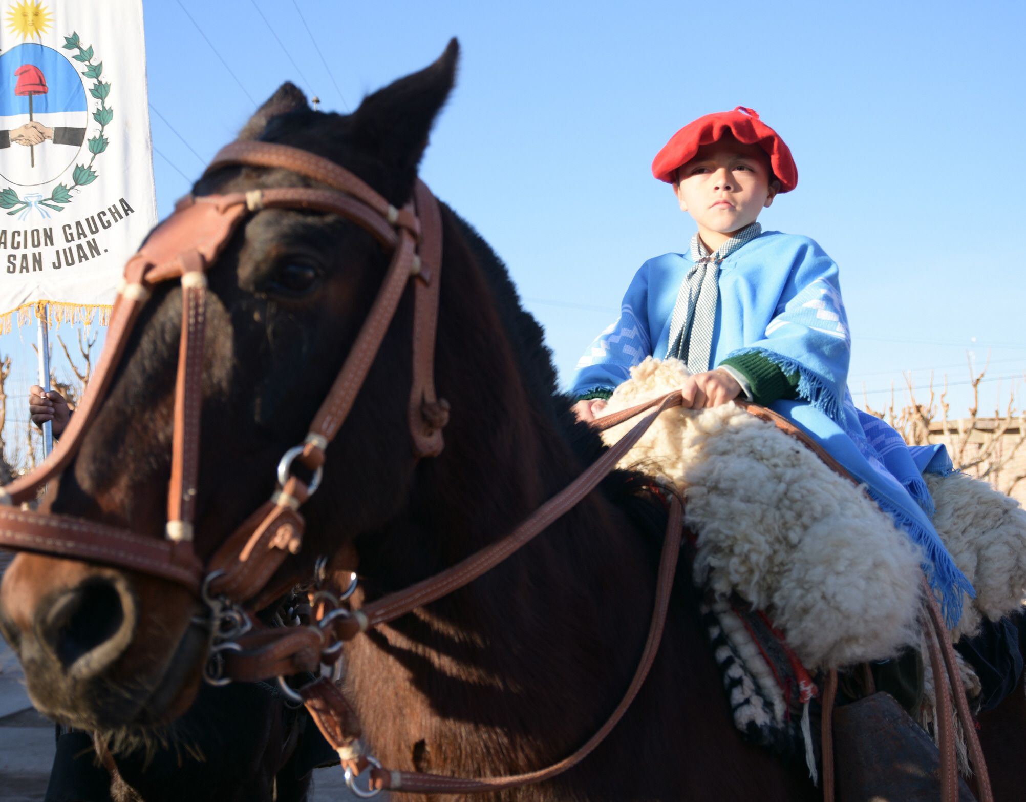 Los niños le aportaron un toque de color y tradicionalismo a la Cabalgata de la Difunta Teresa. Tanto los chicos que participaron de la travesía a caballo como los que se encontraban entre el público que asistió a despedir a los jinetes, lucieron pilchas gauchas para estar a tono.
