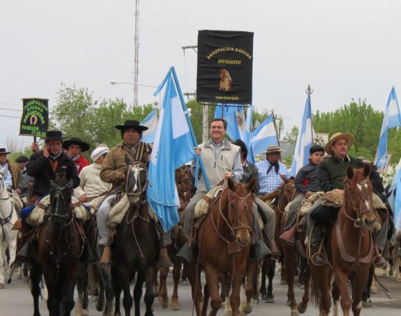 Otra de las paradas importantes fue en la localidad de Los Berros. Allí fueron recibidos por los gauchos del pueblo. Fue cuando compartieron un asado en las instalaciones de la agrupación gaucha. Pasadas las 16, retomaron el camino, con una llovizna penetrante. Cerca de las 18 la columna de caballos llegó hasta su destino final, Divisadero.