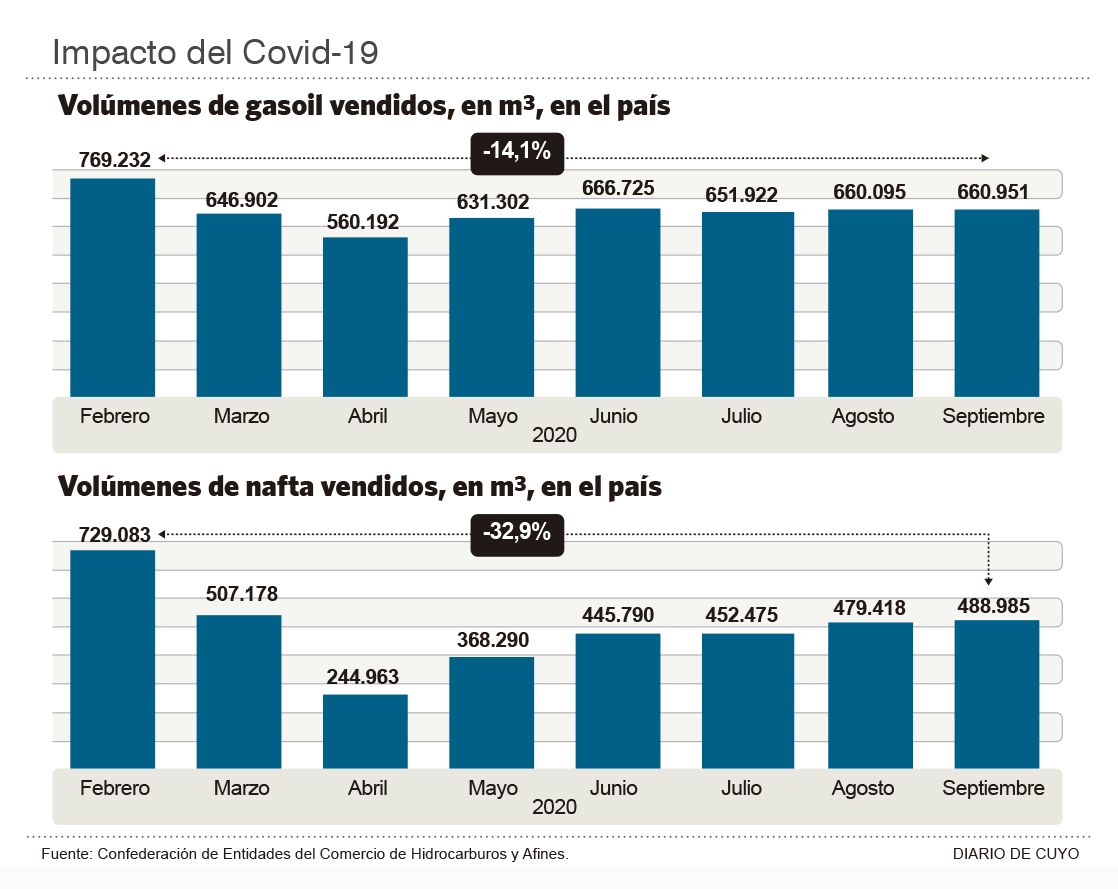 Aunque la venta de los combustibles se había venido recuperando hasta la mitad del año, y había expectativa con el regreso del turismo interno, hay una caída del orden del 30% con respecto a las operaciones en la prepandemia, según dijo la titular de la Cámara de Expendedores de Combustibles de San Juan, Analía Salguero. La consecuencia de la situación es que estiman que un 15% de las estaciones de servicio de la provincia podrían cerrar, que son las ubicadas en los departamentos de la periferia y las que más dependen del regreso del turismo, con lo que estarían en peligro unos 260 puestos de trabajo.