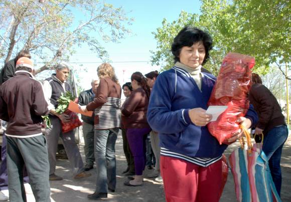 La entrega fue en la plazoleta de la villa. En sólo unos instantes se amontonó un grupo de amas de casa, padres, abuelas y niños mandados por sus madres, alrededor de la señora Galleguillo. Le pedían impacientes, con plata en mano, los bonos para canjearlos por la bolsa. Eran los mismos papeles que ofrecieron a fines del mes pasado para que los clientes de la feria compraran la oferta y que estarán allí nuevamente el lunes y martes que viene.