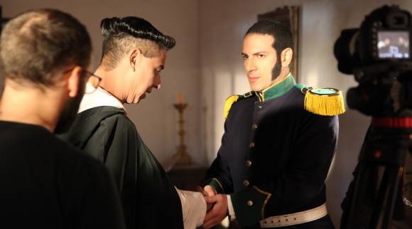 A las 8 de la mañana del domingo pasado, la cámara se encendió por primera vez. Los primeros artistas ya tenían puesto su vestuario, lucían el maquillaje y hasta habían pasado por la peluquería, algunos para cambiar radicalmente su look (ver aparte). Los que prácticamente no necesitaron retoques fueron los soldados que deambulaban por el edificio a lo largo de la filmación. Ya que quienes los interpretaron fueron 2 miembros del RIM 22, quienes lucieron el uniforme histórico.