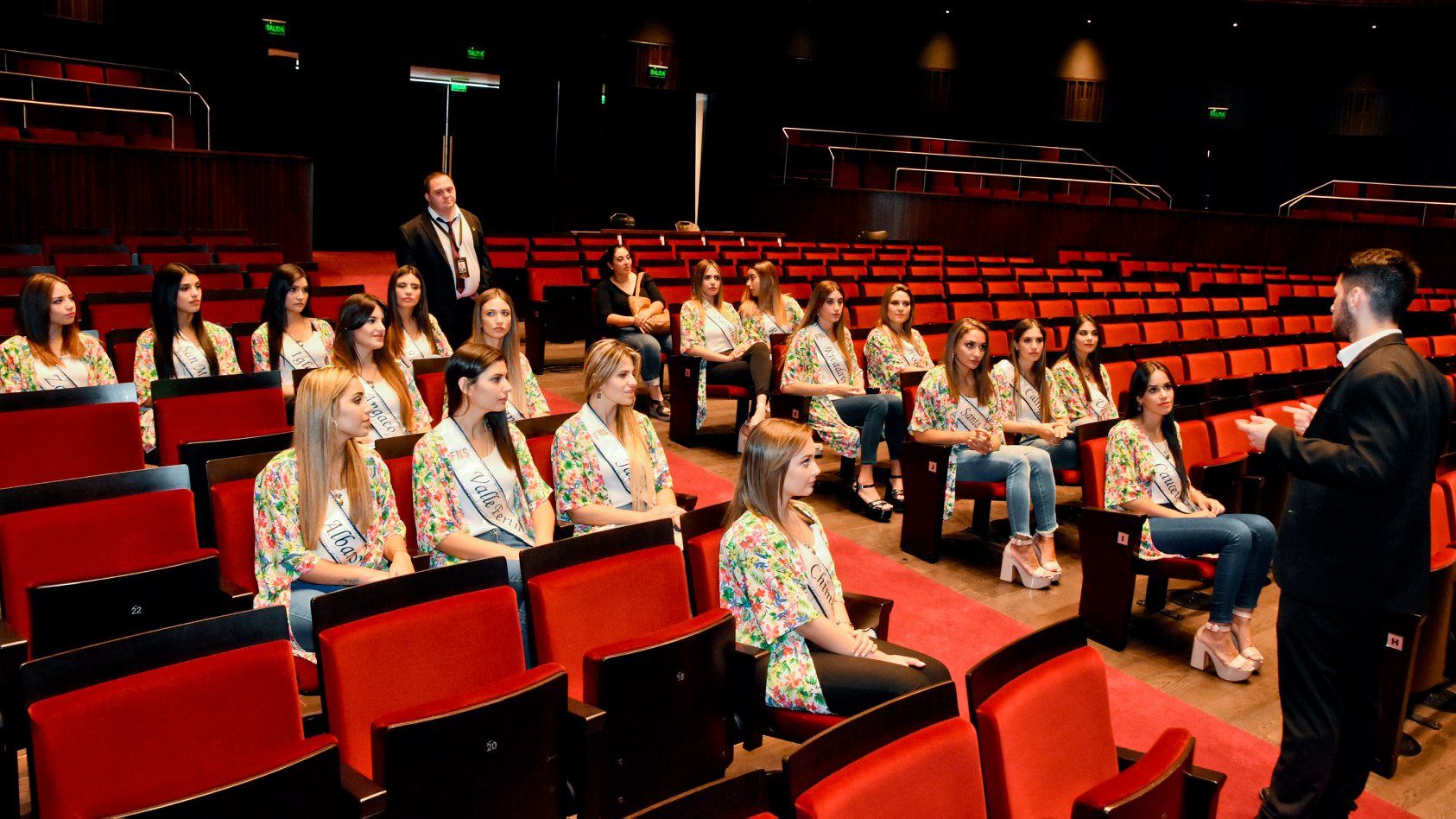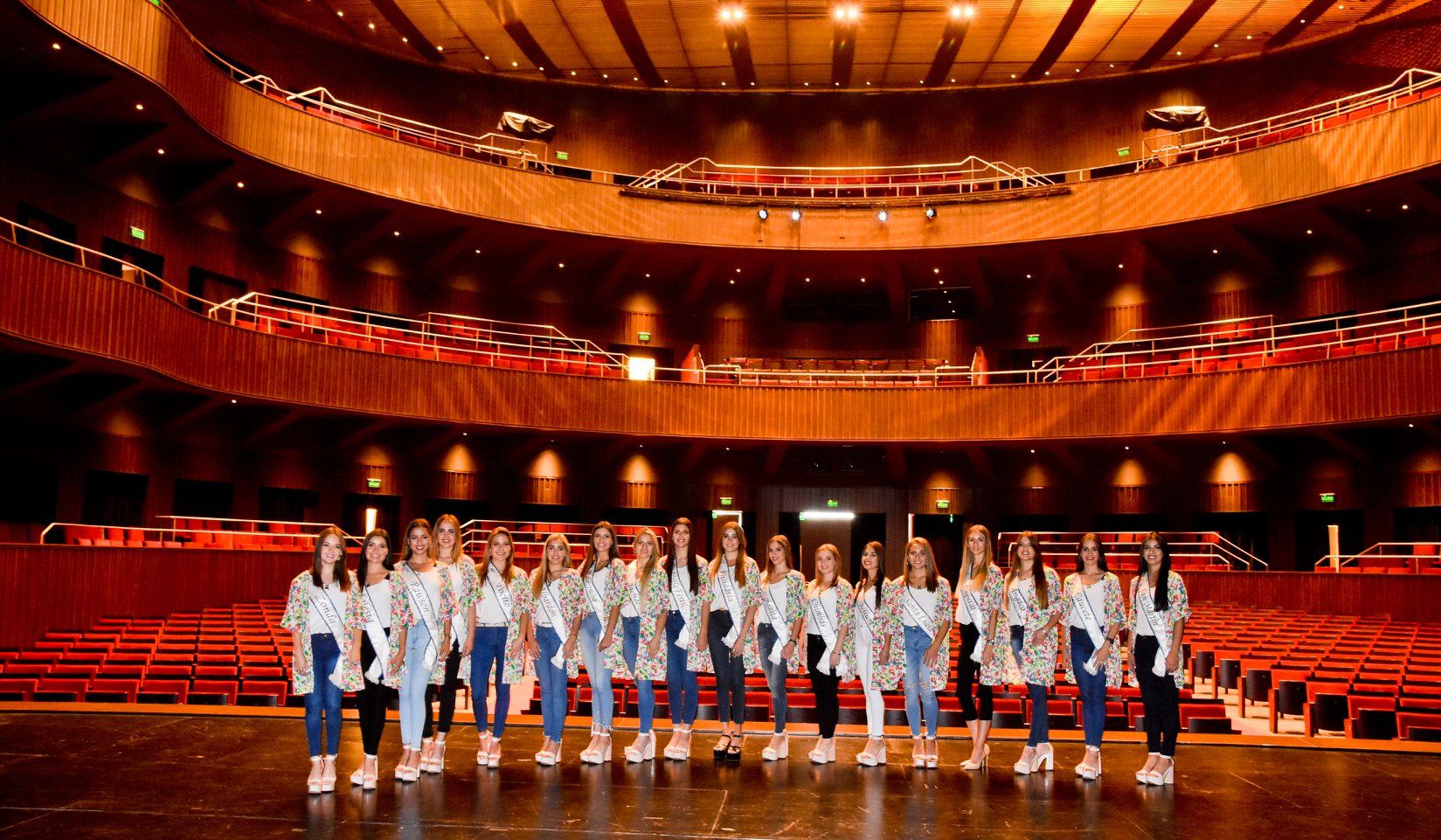 Acompañadas por las actuales Reina y Virreina del Sol, Jocelyn Mauro y Florencia Valdez, las 19 candidatas a la corona de la Fiesta Nacional del Sol 2019, recorrieron el Teatro del Bicentenario.