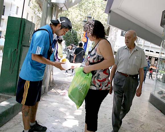 5 Un muestrario. Para levantar sus puestos rápidamente y evitar el decomiso, algunos ambulantes sacan poca mercadería a modo de muestrario, dejando el resto dentro de los bolsos.