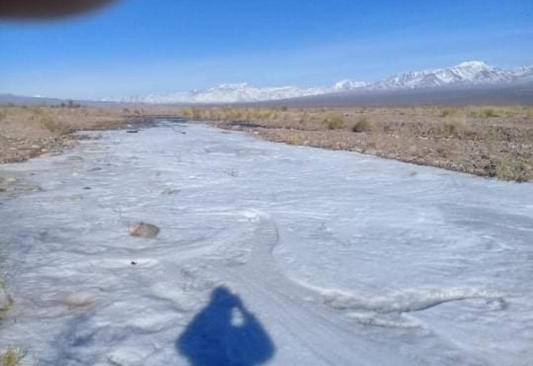 El intenso frío que se viene registrando en la provincia en los últimos días dejó postales de nieve en diferentes departamentos y también una inusual en Calingasta, más precisamente en el Río Los Patos.