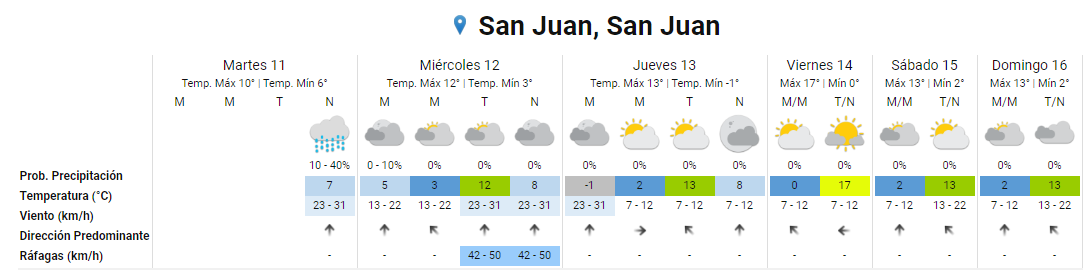 El invierno decidió permanecer esta semana en San juan, donde las ajas temperaturas continuarán reinando al menos hasta el próximo fin de semana.