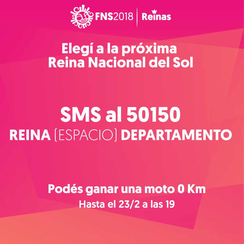 Para votar por mensaje de texto, el usuario debe enviar un SMS. Se registrará su voto en el sistema y recibirá un mensaje de respuesta. Hay que enviar la palabra REINA (espacio) seguido del departamento, también en letras mayúsculas, al número 50150. Esta votación se podrá realizar hasta el 23 de febrero a las 19. El usuario pagará por mensaje $0,84 finales.
